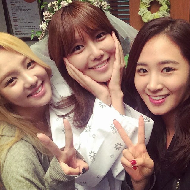 "Dve krásne priateľky, Yuri a Hyoyeon, prišli na moju svadbu a na natáčanie doniesli teplú kávu a chlieb. Srdečné priateľky zahrievajú chladné počasie na natáčaní. Milujem vás yulhyo #girlsgeneration #myspringdays"