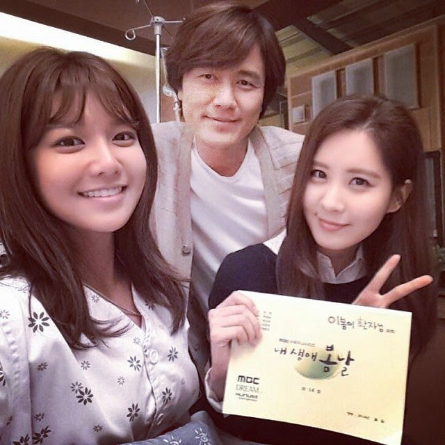 "Na natáčaní sa stretli bohyne a išli pozdraviť a podporiť Sooyoung, režiséra a hercov...Moje sestry...Veľmi vám ďakujem a ľúbim vás! #myspringdays #goddesses #mrdonghasmile #girlsgeneration #iloveyoufriends"